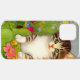 iPhone Case featuring a smiling cat! This funny cat is playing in a garden of pink, orange, red, and blue flowers. A remarkable gift for cat lovers and Victorian art enthusiasts!
