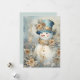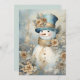 Vintage Snowman Gold Blue White Christmas Holiday Card
