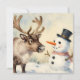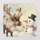 Vintage Snowman & Reindeer Personalized Christmas Holiday Card