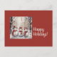 This charming postcard is the perfect way to share the warmth and love of the season with your family and friends. Three loveable snowmen, each wearing cosy scarves and cheerful red hats, evoke a sense of holiday merriment. Customise with your own customised message and return address to make the card uniquely yours. (Created using generic AI tools.)