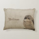 An adorable throw pillow that says Welcome on one side and Sit Awhile on the other.