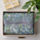 A profusion of forget-me-not bouquets accented with pink roses and ribbon, with a few white lilies for elegance. Set against a watercolor collage background of lavenders. Two vintage blue butterflies, and the picture of abundant floral beauty is complete.