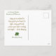 Back features optional Irish blessing graphic in custom gold Celtic font, shamrock and editable text.