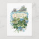 Lovely vintage Irish greeting featuring rustic landscape, blue forget-me-nots, green shamrocks and St. Patrick's Day Greetings typography. Back features editable Irish blessing message.