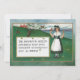 Beautifully restored vintage St. Patrick's Day illustration featuring young Irish girl resting on a scenic hillside, clover-embellished banner and greeting. Back features complementary graphics and editable text fields.