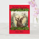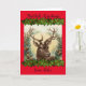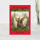 Vintage stag's head, with holly garlands on red background. Add your own name/family name on the front and your message inside. Traditional -style Yuletide greetings, alternative Christmas card for the winter season. Suitable for Pagans, Wiccans.