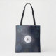 Vintage stamp pattern in blue on a tote you can personalise with your initial.