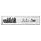 A black and white image of a vintage steam engine. Very simple design. You could add the name of you favourite train collector or anything else