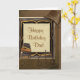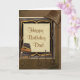 A beautiful vintage, steampunk collage birthday card. Card has layers of old stamped tin, stack of books, a bicycle and a derby hat