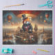A charming red panda emerges in elegant Victorian steampunk attire, surrounded by a whimsical landscape of floating hot air balloons. Intricate brass gears and mechanical elements create a mesmerising backdrop of industrial fantasy. Soft, rich colours blend with metallic accents to bring this extraordinary scene to life. Delicate details capture the imagination of mixed media artists and craft enthusiasts. Every brushstroke tells a story of magical technological wonder and creative exploration.