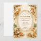 This charming woodland baby shower design features adorable forest animals gathered around a delicate vintage frame, creating a warm storybook scene perfect for celebrating a little one on the way. Sweet illustrations of a bunny, raccoon, squirrel, and owl are surrounded by tiny mushrooms, pinecones, wildflowers, and soft woodland greenery. The warm neutral palette and gentle watercolor style give the design a cozy, nostalgic nursery feel inspired by classic children’s book illustrations. Perfect for nature-themed baby showers, woodland celebrations, or rustic forest gatherings.