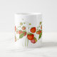I have grabbed this mug twice now to give water or tea to a thirsty person. Holds a huge amount of refreshment. And as for the vintage Strawberries, they printed perfectly. It is just a great summer Mug! You or a person gifted with it will love it! The printing is bright and the red is exactly as the image I put on it. It is a happy cheerful mug for hot days, to fill with yogurt or ice cream or a huge amount of thirst quencing liquid!