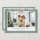 These editable 2-sided landscape classic Christmas photo holiday cards are a perfect way to share the holiday cheer and wishes for a happy holiday season. The DEVON Collection features a photo of your family with an editable Merry Christmas message on the front and the year in a classic serif font in green. A backside is included with three family photos and a note, with a green stripe pattern. A red and green Christmas bow tops a photo holiday card that showcases your family photo on this vintage christmas card with photos.