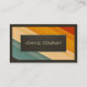 Classic vintage diagonal stripes business card. Rich retro style gradient stripes dramatically framing information box. Solid colour back. This version's palette: oranges, creams, deep grey browns and soft blue greens.