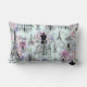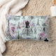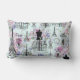 Vintage stripes Eiffel Tower collage pink floral Lumbar Cushion