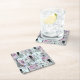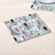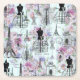 Vintage stripes Eiffel Tower collage pink floral Square Paper Coaster
