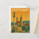 Beautiful and stylish Stuttgart Germany vintage artwork on a postcard showing the amazing architecture with landmarks like the castle or tv tower and cityscape of the city in Baden Württemberg. Great souvenir and gift idea.