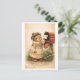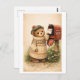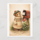 This is an AI-generated image of a bear in a sweater and cap mailing a postcard.