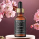 This dropper bottle product label features a black background with white text. This label measures 2.375 inches long by 1.25 inches high (60 mm long by 38 mm in height) and is a great choice when you are looking to package essential oils, fragrance oils, beard oils, face serums, hair serums, and other products in standard 1 ounce or 2 ounce glass dropper bottles.