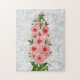 My original digital designed artwork is featured on this pretty puzzle, consisting of a vintage grey floral pattern given a slight distressed appearance, with a vintage illustrated Hollyhock type flower in front. The size of this unique puzzle is 11” x 14”, and in the ‘challenging’ category, however you may size up or down as desired.