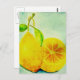 One and a half lemons. Traditional still life watercolor painting of bright yellow lemons done in a retro vintage style with a soft green background.