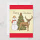 A vintage style merry christmas scene with a tree a snowman and a reindeer. This design looks really effective on these Invitations