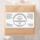 A product label for cosmetic bottles featuring a white background and a vintage style. This label contains space for your product name, business name, product weight, ingredients, instructions, social media, and business address. This label measures 3.75 inches by 2 inches (95 mm by 51 mm) and is suitable for bottles with a diameter of 1.2 inches (31 mm) or more such as 4 oz (120 ml) bullet, cylinder, and boston round bottles. It can also be used for cosmetic jars and other types of cosmetics packaging.