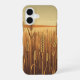 Retro illustration of a stylized wheat field with simple shapes and a softened golden palette.