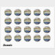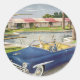 Vintage Summer Vacation, Convertible Car and Motel Classic Round Sticker