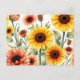Vintage Sunflowers and Marigolds Botanical Postcard
