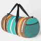 A colourful, retro stripe design in aqua blue and orange on a faux wood print background. A vintage surfboard stripe design with a beach and surf look. Add your name to make this a personal bag that will stand out amongst your friends. The text is a retro serif font.