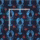Vintage surreal pattern of blue lobsters and red starfish. Boho pattern with seafood. Blue lobsters and red starfish retro pattern in block print style.
