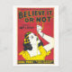 This postcard is a reproduction of a vintage poster advertising Edna Price, a sword swallower, as part of the "Believe It or Not" troupe promoted by Ripley.