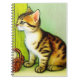Notebook featuring a sassy tabby cat! This pretty tabby poses next to a basket and flowers. A perfect gift for cat lovers and Victorian art enthusiasts!