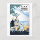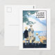 This postcard is a reproduction of a vintage library literacy poster reading "Take along a book," and showing a family leaving on vacation.