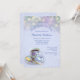 Romantic and feminine vintage tea cup decorated with sweet violets on a blue background, with soft focus garden lights and floral colours. Bridal Shower Tea Party invitation. Part of the Vintage Tea Party Bridal Shower Blue Collection.