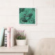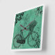 Vintage Teal Bicycle, unique and beautiful featuring a vintage bicycle with a basket of flowers and a muted teal background with birds and black swirls.