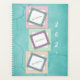 A blue or teal coloured background with colourful frames for your very own photos. Use the templates to personalise this planner and add three photos you would like to see on the cover of this planner. The year is also a template text so make sure you change the asterisk to the year for which you are purchasing it.
