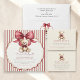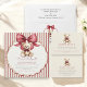Celebrate the upcoming arrival of your little one with this adorable teddy bear baby shower invitation! Featuring a charming teddy bear graphic, a sweet pink bow, and the heartwarming phrase "We Can Bearly Wait," this design is perfect for a baby boy or baby girl shower. The classic cream background and elegant red bow add a touch of vintage charm, making it a memorable keepsake for your special day. Ensure all your guests receive this lovely invitation to share in your joy and excitement. It's a perfect way to announce your baby shower celebration.