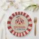 Come one, come all! Complete your decor at the greatest birthday party under the big top with our circus carnival party plates templates. This circus carnival ticket birthday party plates features vintage red and blue tent with a red big top tent background on a party plates design.