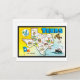 This is a reproduction of a vintage travel/tourism postcard showing a map of Texas.