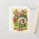 Custom Thanksgiving postcard featuring a vintage illustration of a turkey and autumn leaves. Personalise it with your own custom Thanksgiving message and wishes!