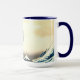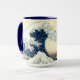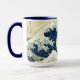 This is a digitally enhanced print of the iconic antique 1829 -1833 woodblock print by the Japanese ukiyo-e artist Hokusai titled The Great Wave off Kanagawa (Japanese: 神奈川沖浪裏) and depicts an enormous wave threatening three boats off the coast of the town of Kanagawa (the present-day city of Yokohama, Kanagawa Prefecture) while Mount Fuji rises in the background.