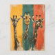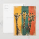 This vintage three giant heads on yellow, green and red vintage African-style backgrounds combine the majestic beauty of the giraffes with vibrant colors and cultural accents. The powerful minds of the giraffes stand out against a background in typical African colors yellow, green and red, reflecting African culture and nature. The African influence in design creates an exotic and artistic touch that captures the flair of the African savannah. This postcard is perfect for nature lovers, collectors of African art or anyone who wants to bring a piece of African heritage to their home. A unique souvenir or gift that celebrates the wild beauty of Africa.