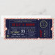 Bold fonts decorate this vintage inspired ticket. Perfect for any event hosted in a historic union station or theatre. Shown in shades of Navy Blue, Light Yellow and Red. Add in your names, venue information and wedding date to announce your big day in style! To further customise (changing fonts and/or colours) click the orange 'customise it' button, above.