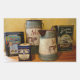 An array of old tin jugs advertsing milk, teacaddies and candy tins - the perfect still life for a kitchen or dining area, and for people that love nostalgia, country style and the vintage look.