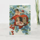 Antique Valentine's Day image from postcard ca. 1910. Little girl writing love letter with little boy cupid watching. Hearts and flowers.