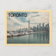 A stunning vintage-style postcard showcasing the iconic Toronto skyline, including the famous CN Tower, viewed from the scenic harbour filled with boats and yachts. The classic, faded colours and retro filter give this image an authentic vintage travel poster feel, evoking the city's modern architecture and waterfront appeal. This card is perfect for sending a thoughtful message, commemorating a trip to Ontario, or framing as a small piece of city art. A great design for anyone who loves Canada, city views, or waterfront cityscape designs.