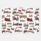 Vintage Toy Train Colourful Trains Pattern Wrapping Paper Sheet
