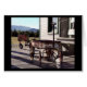 A vintage toy wagon and tractor wait on the front porch of an old white clapboard country house in the mountains. Oh, the stories these venerable, well-loved toys could tell. On the back of the card is a toy tractor.